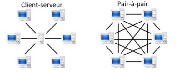 Cependant, il existe d’autres formes de communication, comme les réseaux pair-à-pair (appelés peer-to-peer en anglais, ou P2P en abrégé). Ces réseaux ne suivent pas l’architecture client-serveur classique. En effet, dans un réseau P2P, la distinction entre client et serveur n’a pas vraiment de sens. Chaque ordinateur, que l’on appelle un noeud, peut être à la fois demandeur et fournisseur de ressources. Ainsi, un noeud peut agir comme client lorsqu’il télécharge un fichier, et comme serveur lorsqu’il partage ce même fichier avec d’autres utilisateurs. Dans certains cas, il peut même remplir les deux rôles simultanément, ce qui rend les échanges plus flexibles et mieux répartis entre les participants.